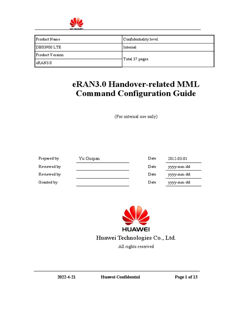 eRAN3.0 Handover-Related MML Command Configuration Guide | PDF ...
