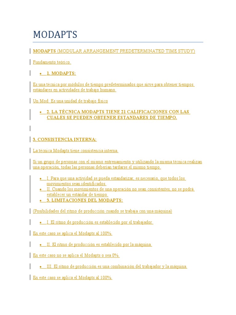 Qué es MODAPTS y su aplicación | PDF | Hora | Mano