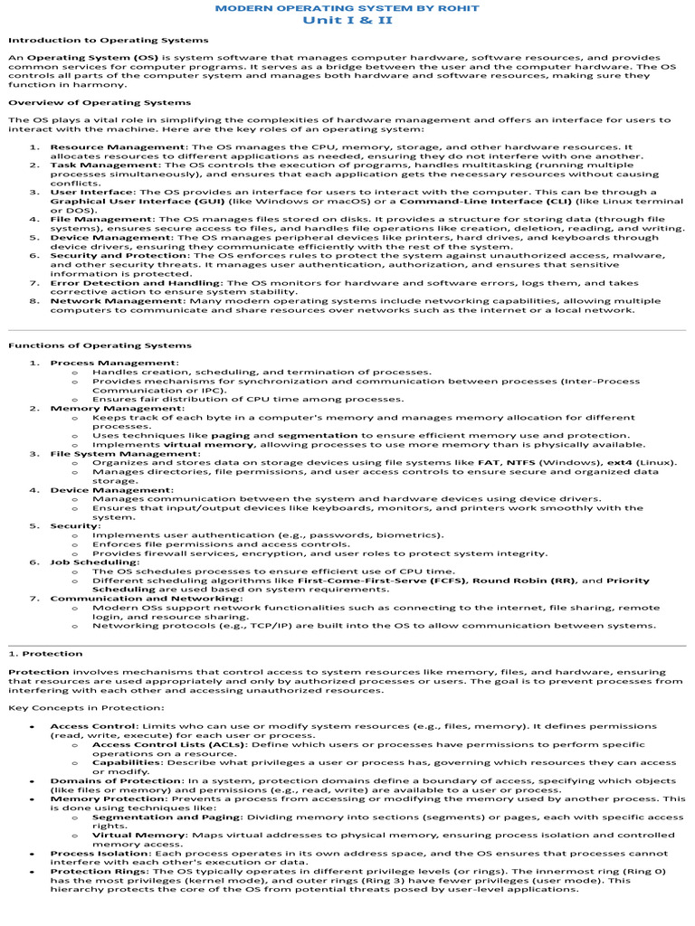 MOS By ROHIT Unit I, II | PDF | Operating System | Process (Computing)