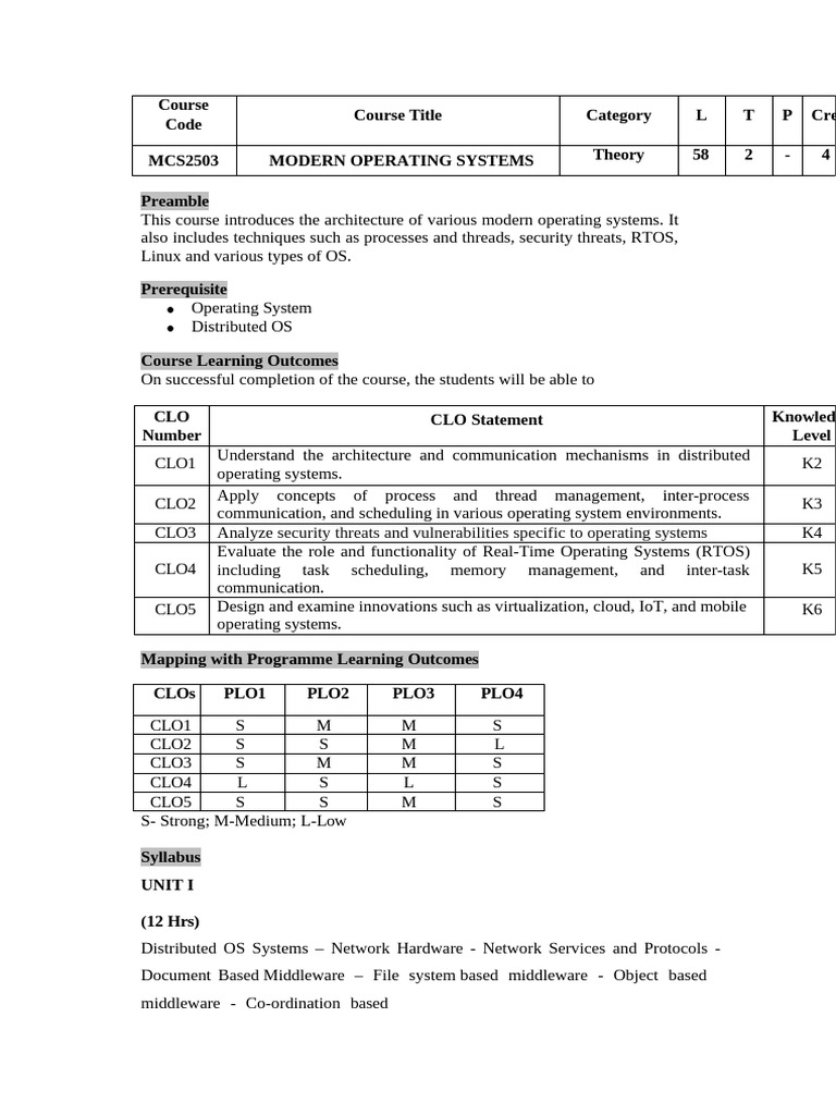 Mos Syllabus | PDF | Operating System | Process (Computing)