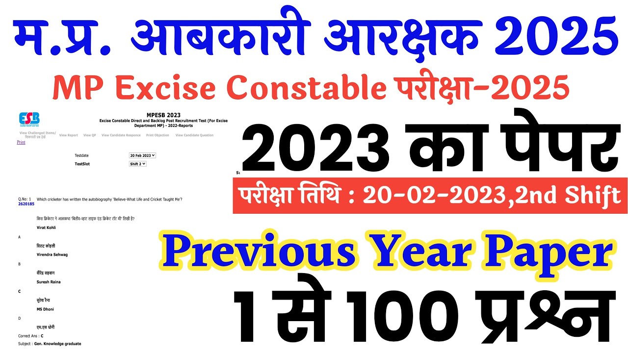 MP Excise Constable 2023 Previous Papers Free Pdf Download