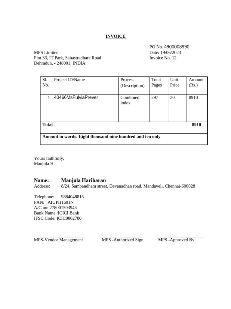 MPS Invoice Format for Excel | PDF