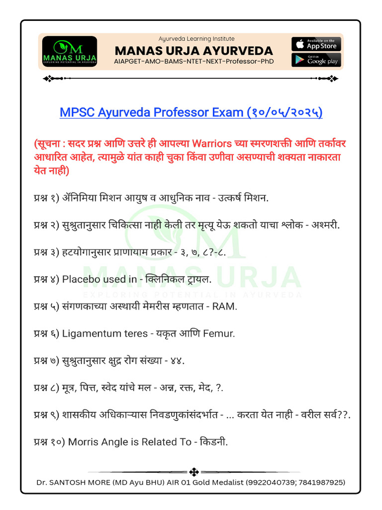 MPSC Professor Exam Memory Based Paper | PDF
