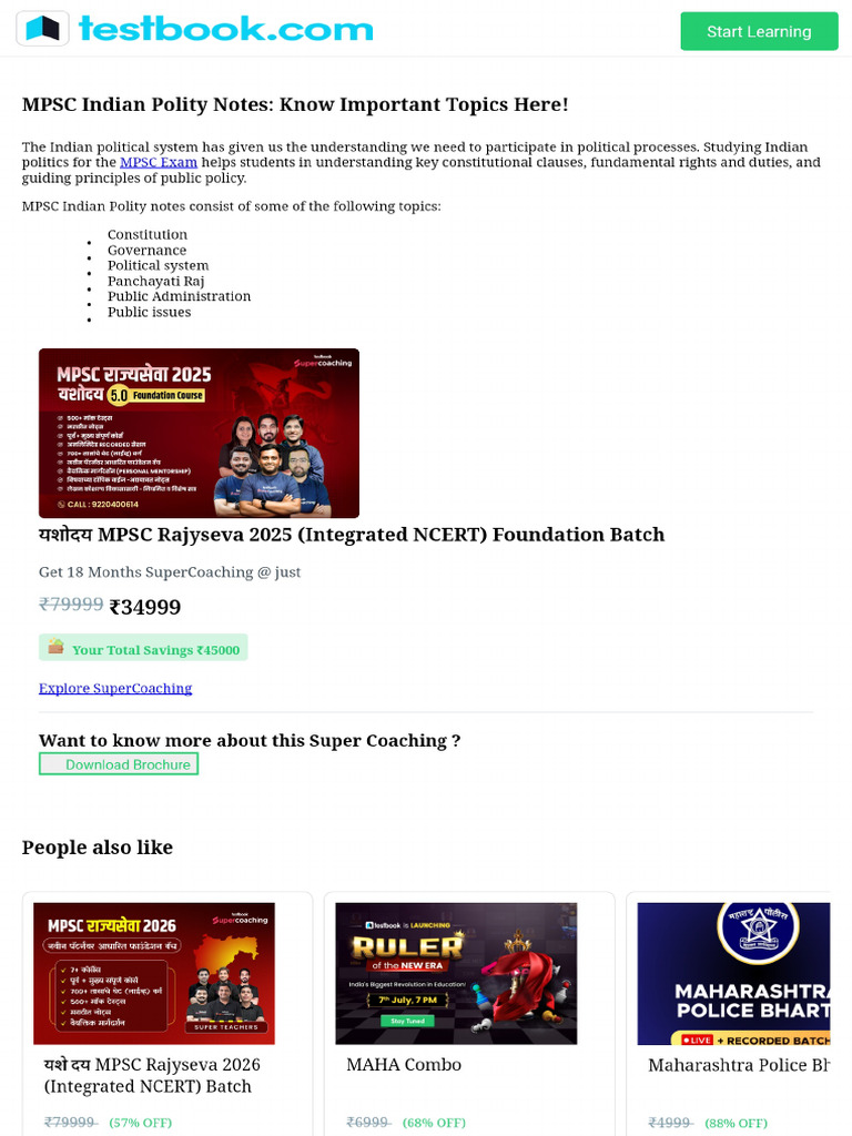 MPSC Indian Polity Notes - Important Topics & PDFs For MPSC Exam! | PDF