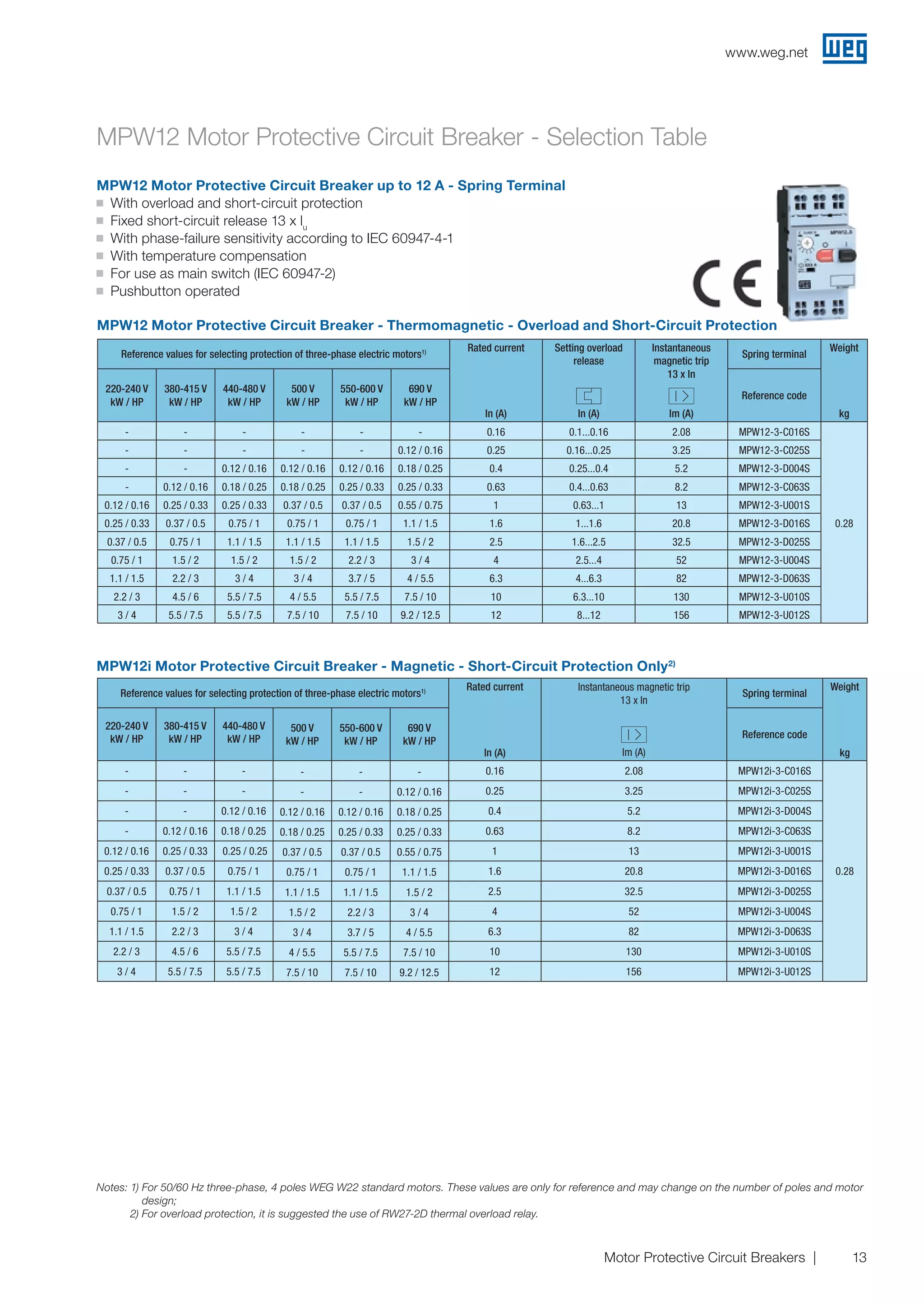 MPW - Motor protective circuit-breakers | PDF