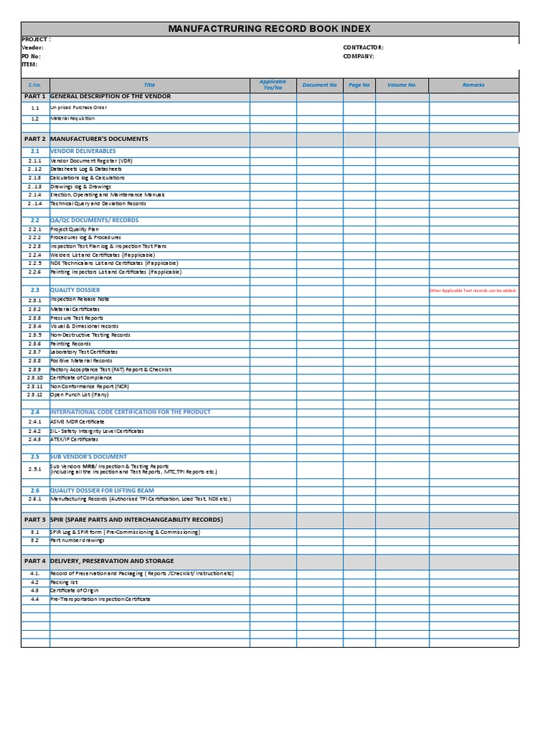 Sample MRB Index For ENI | PDF | Nondestructive Testing | Engineering