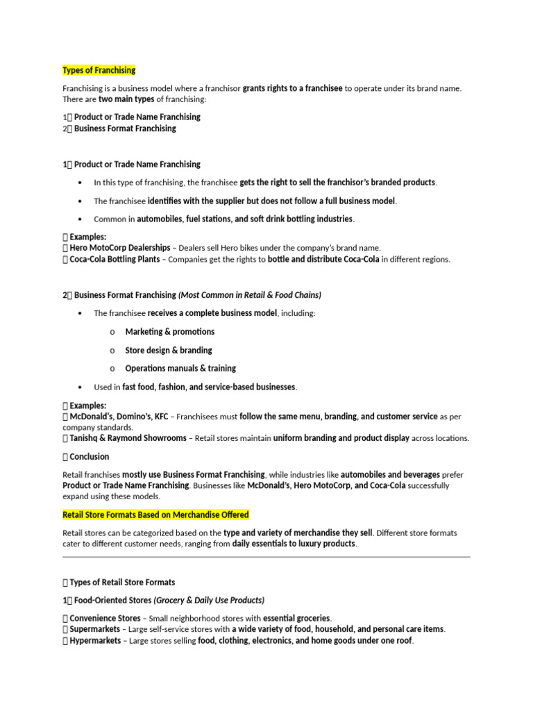 short note mrb | PDF | Franchising | Retail