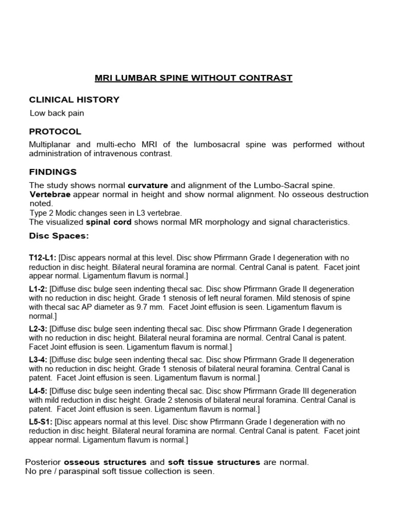 Report MRI LUMBAR | PDF | Spinal Cord | Vertebral Column