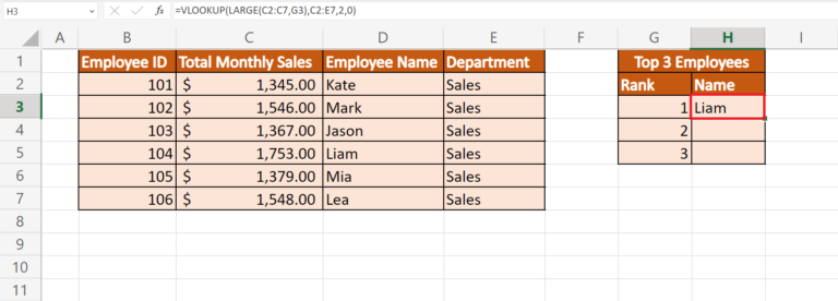 How to Use LARGE Function with VLOOKUP Function in Excel