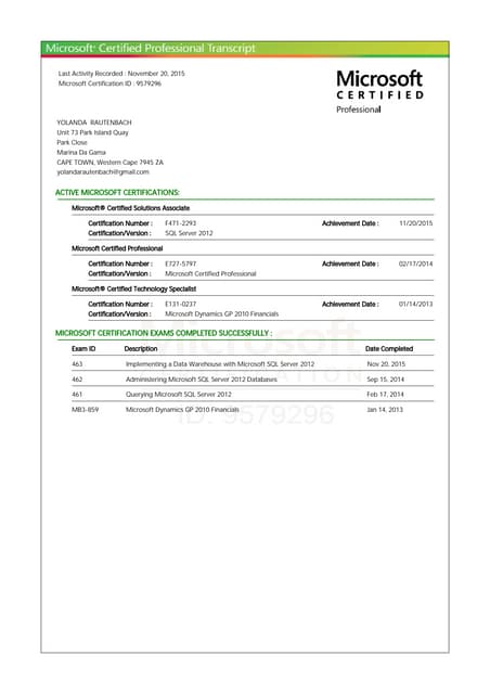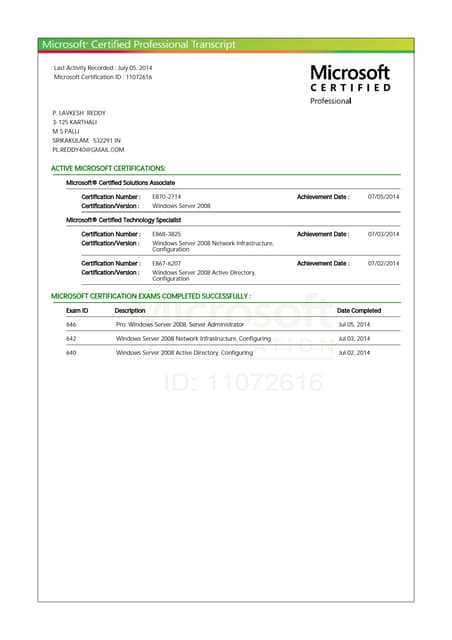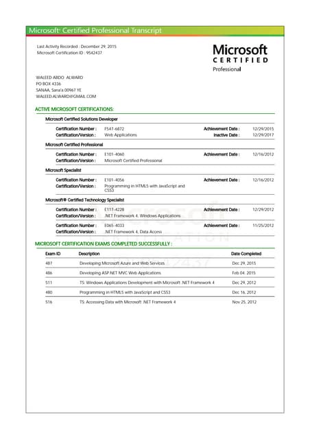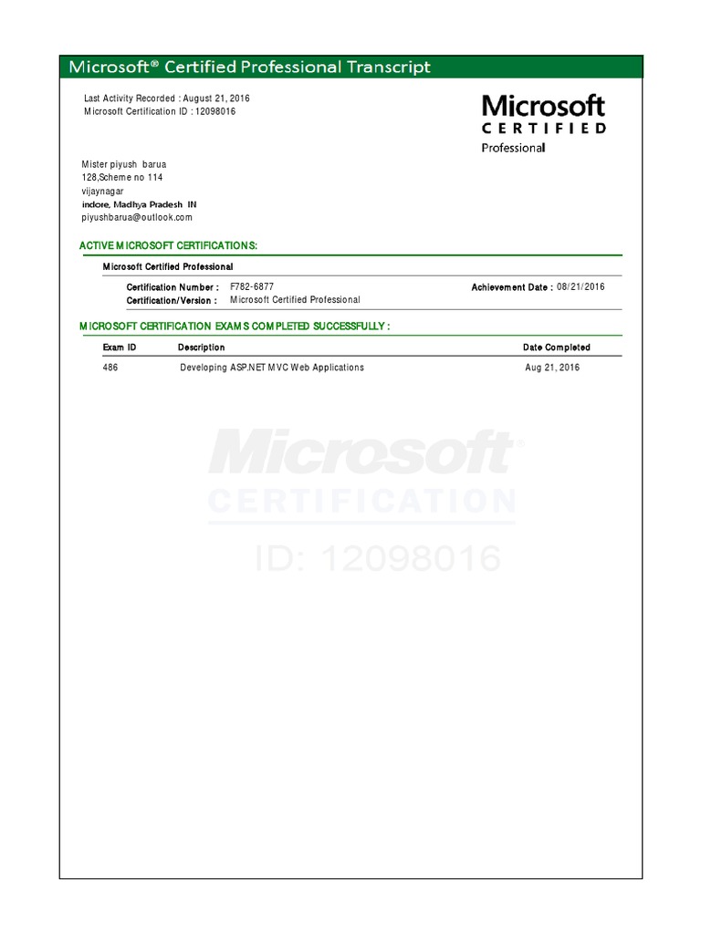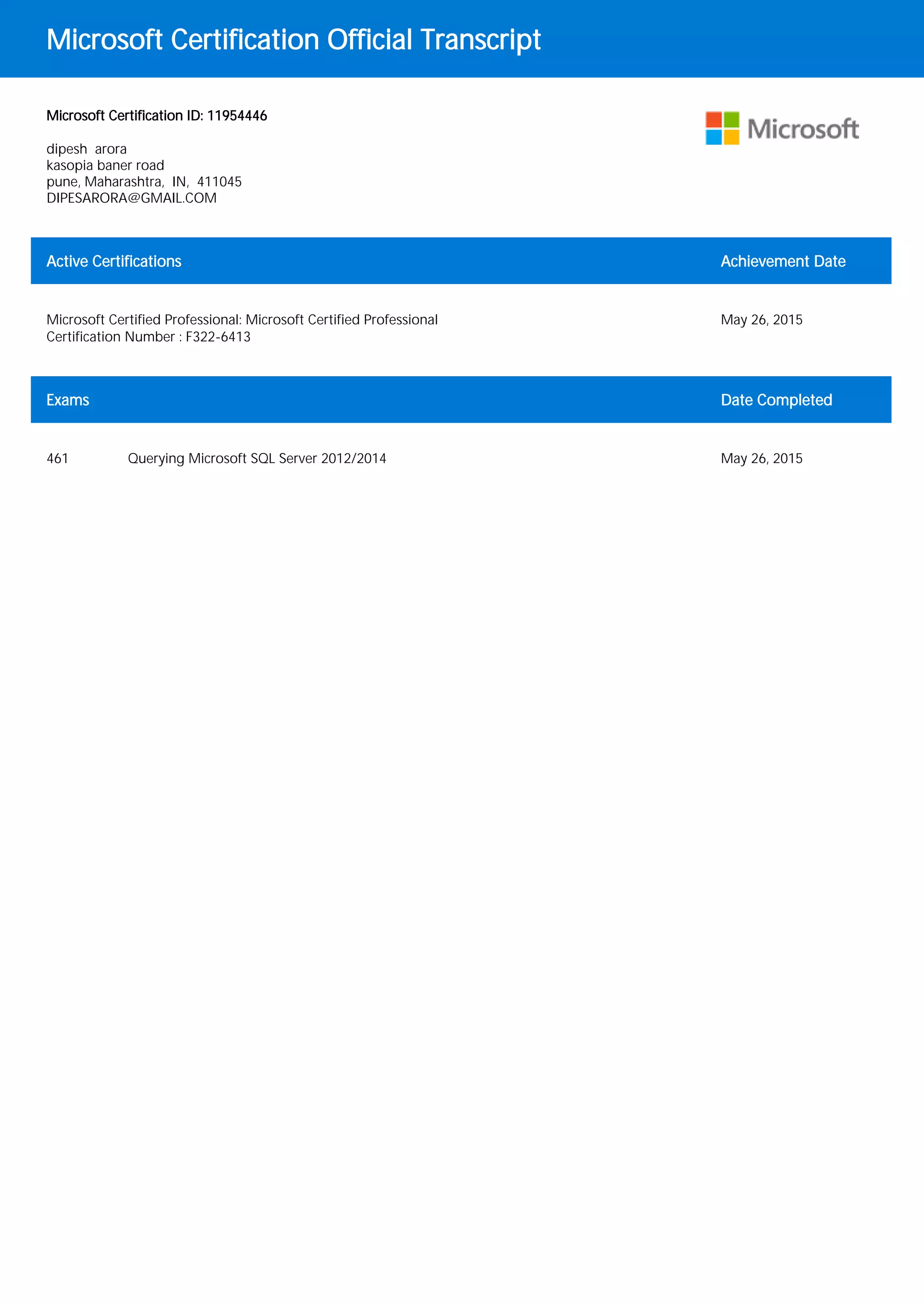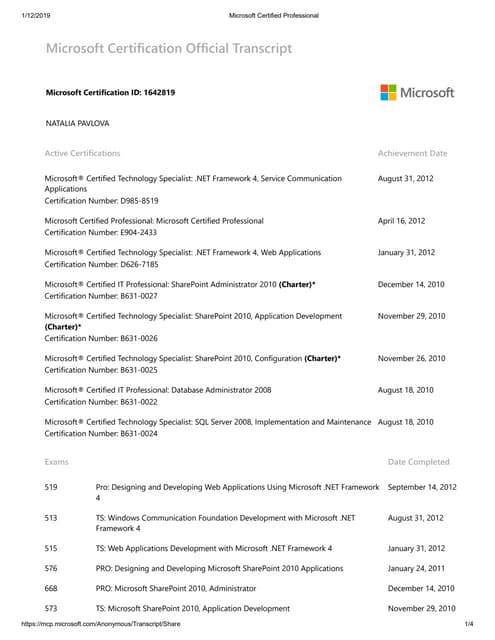 Microsoft Certified Professional Transcript | PDF | Microsoft Certified ...