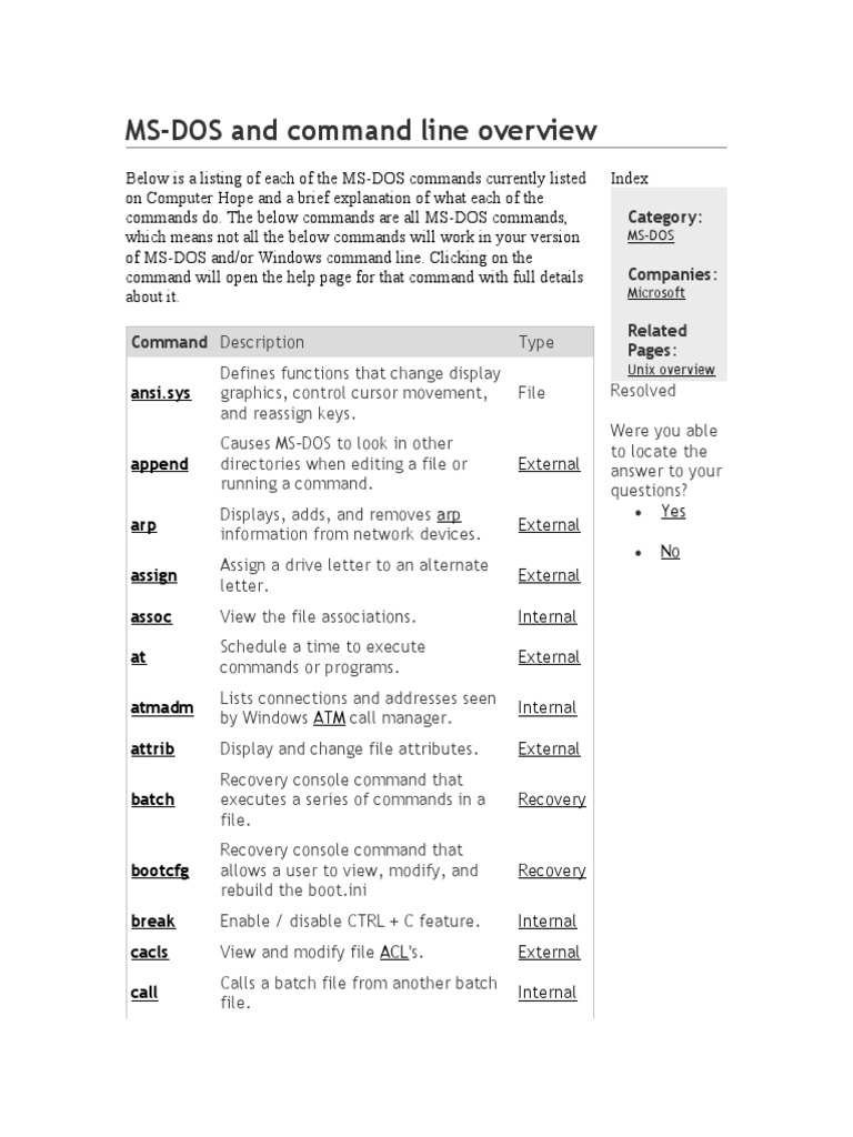 Basic Overview of MS-DOS Commands | PDF | Command Line Interface ...