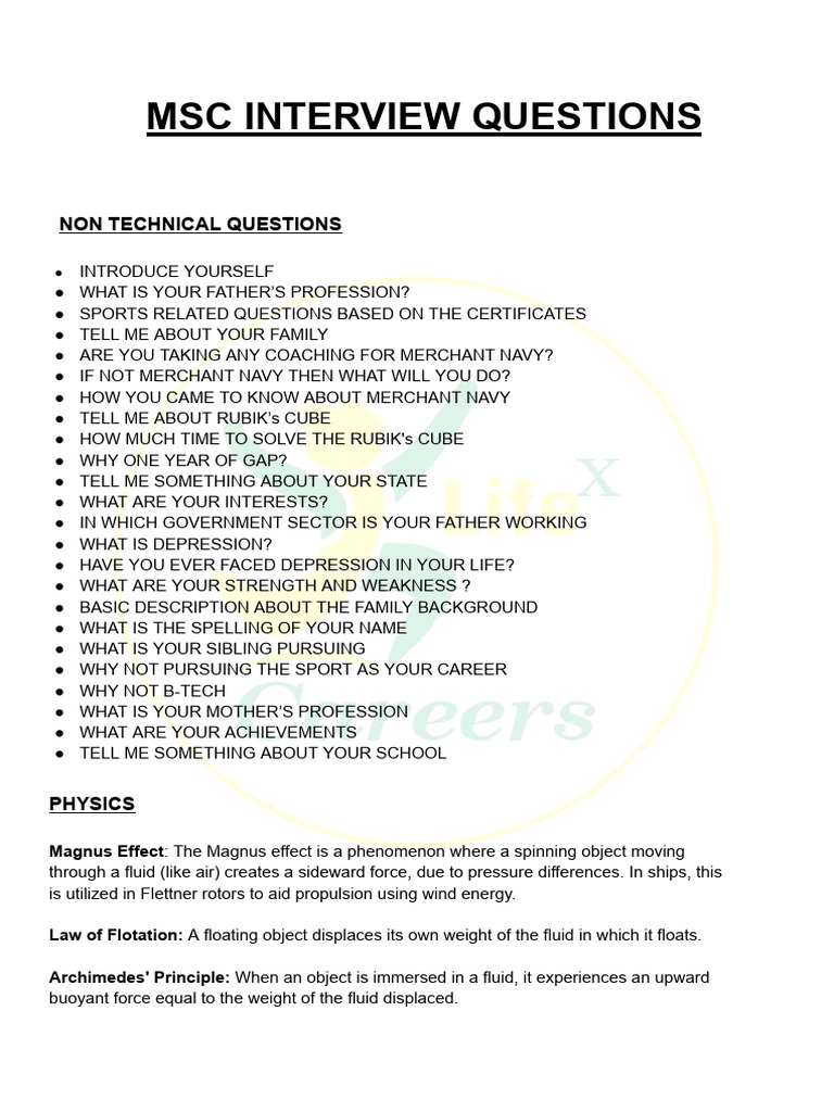 MSC Interview Questions 2025 | PDF | Buoyancy | Ships