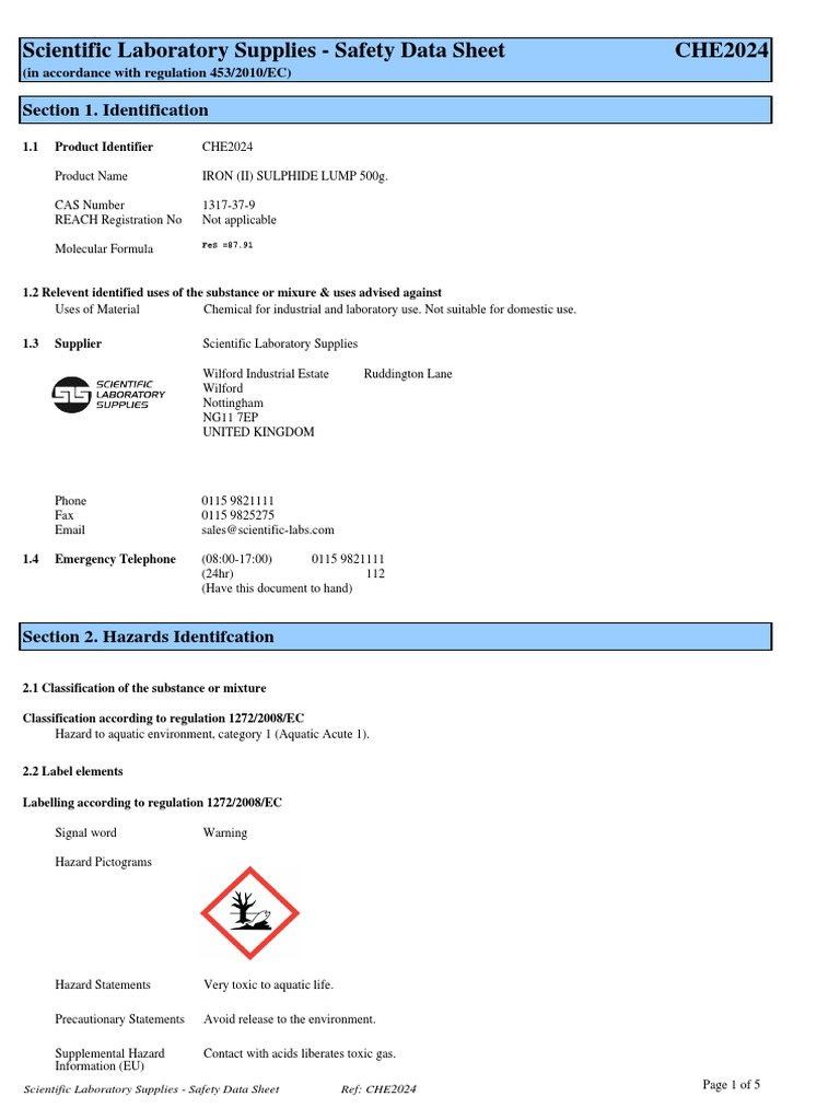 Scientific Laboratory Supplies - Safety Data Sheet CHE2024: Section 1 ...