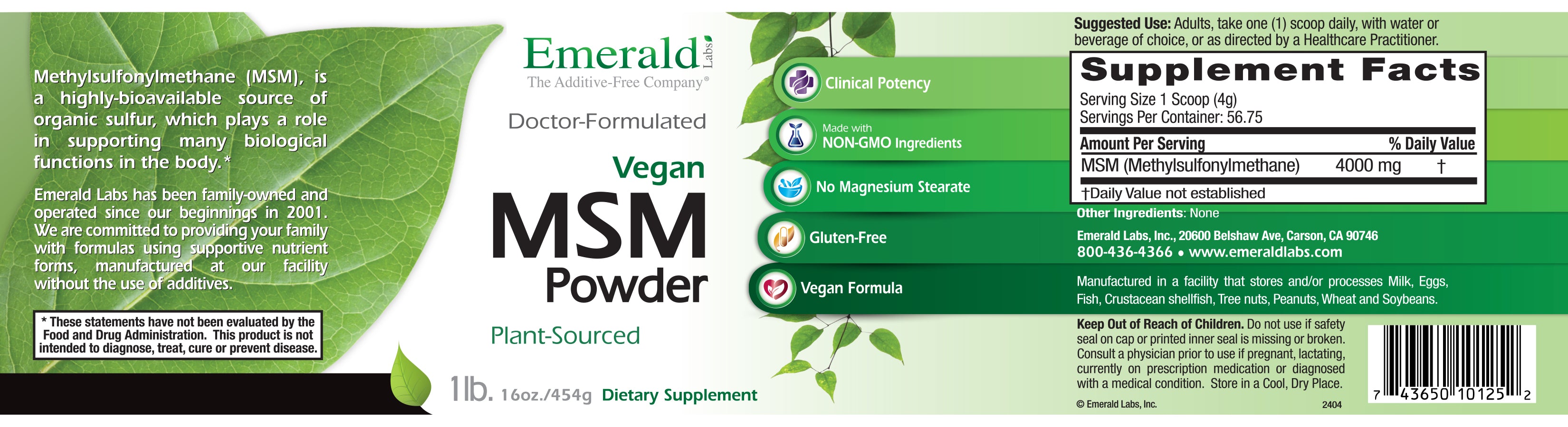 MSM Powder (16oz) | Emerald Labs