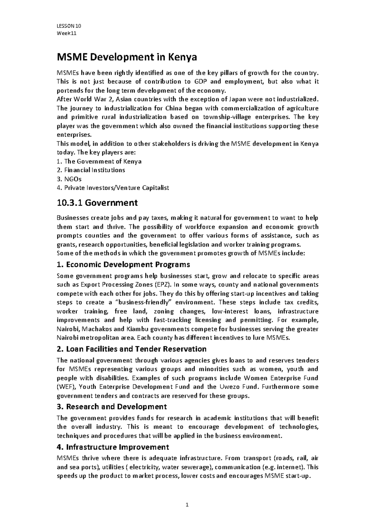 MSME Development in Kenya - Week 11 MSME Development in Kenya MSMEs ...