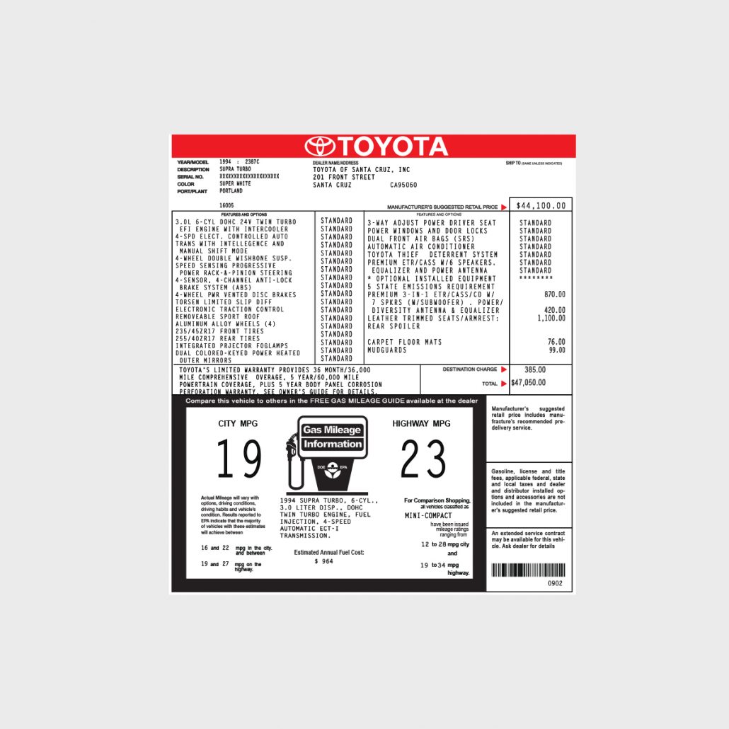 Matt Conger's MR2 Turbo Website - MSRP Window Sticker