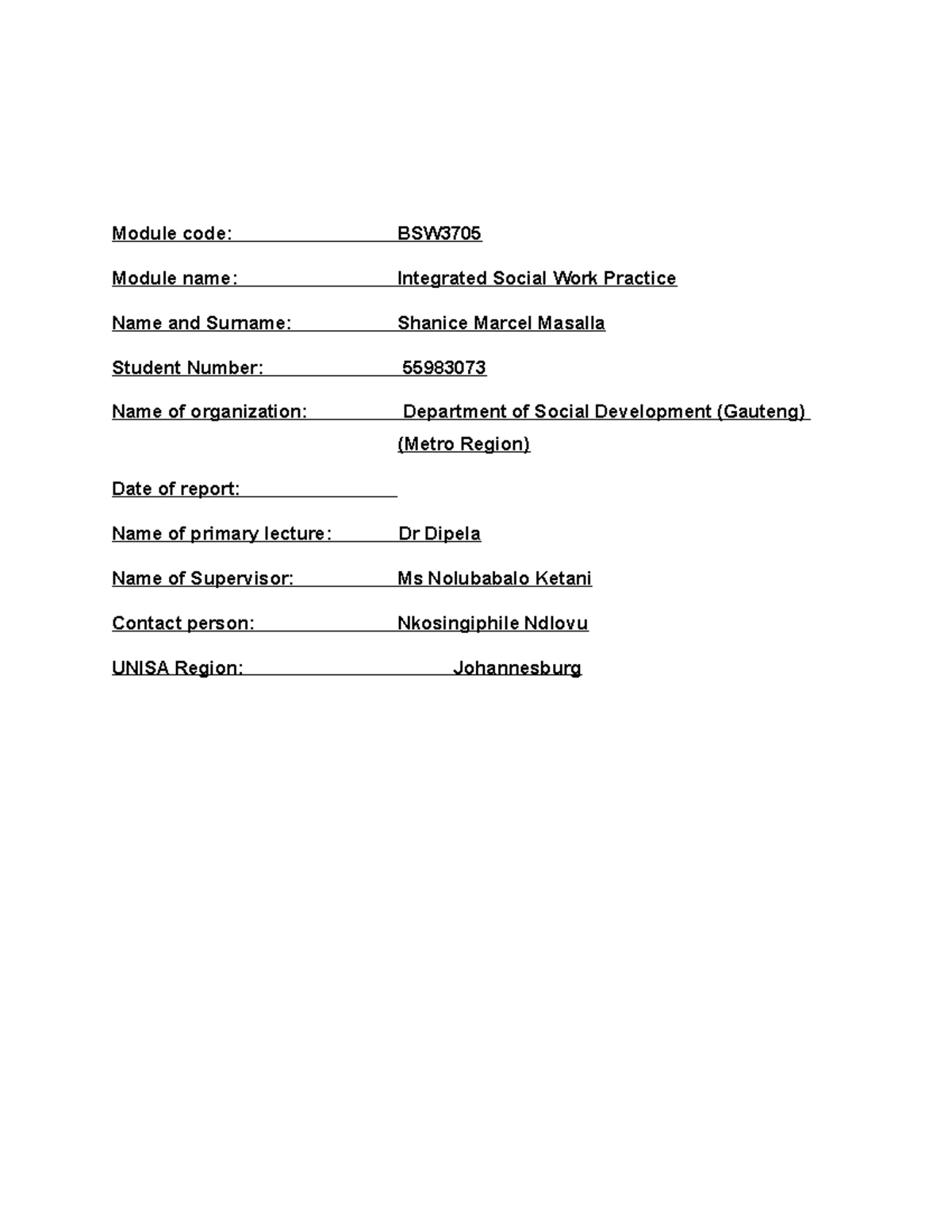BSW3705 Integrated Social Work Practice: Casework Report 2 - Studocu
