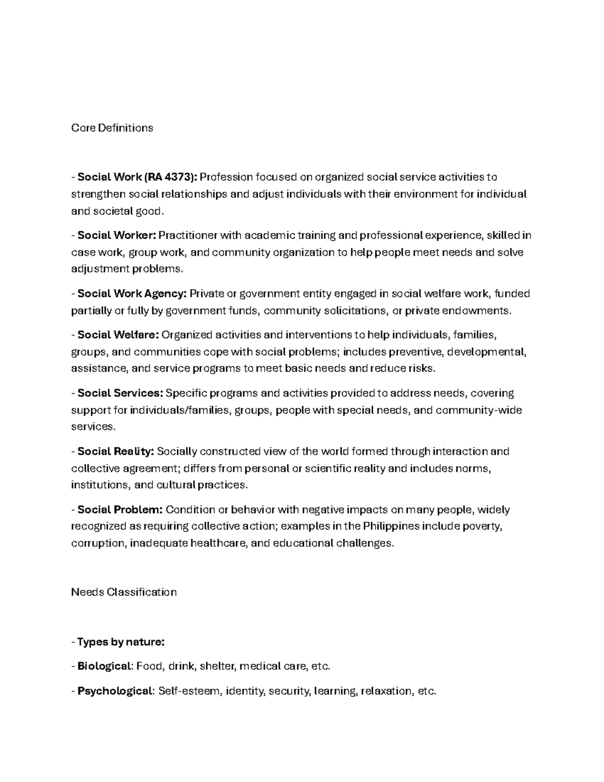 Core Definitions and Concepts in Social Work - Studocu