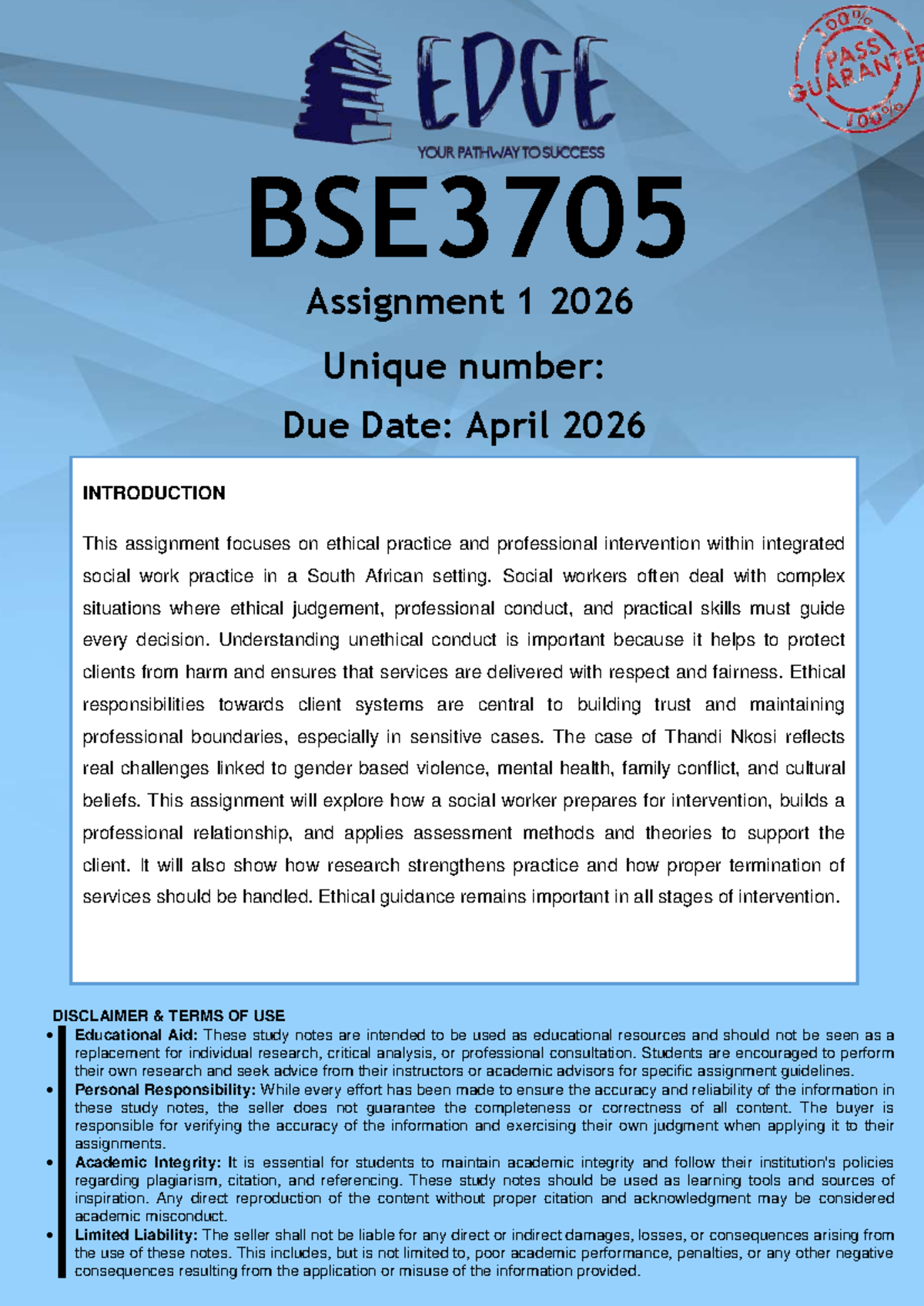 BSW3705 Assignment 1: Ethical Practice in Social Work 2026 - Studocu