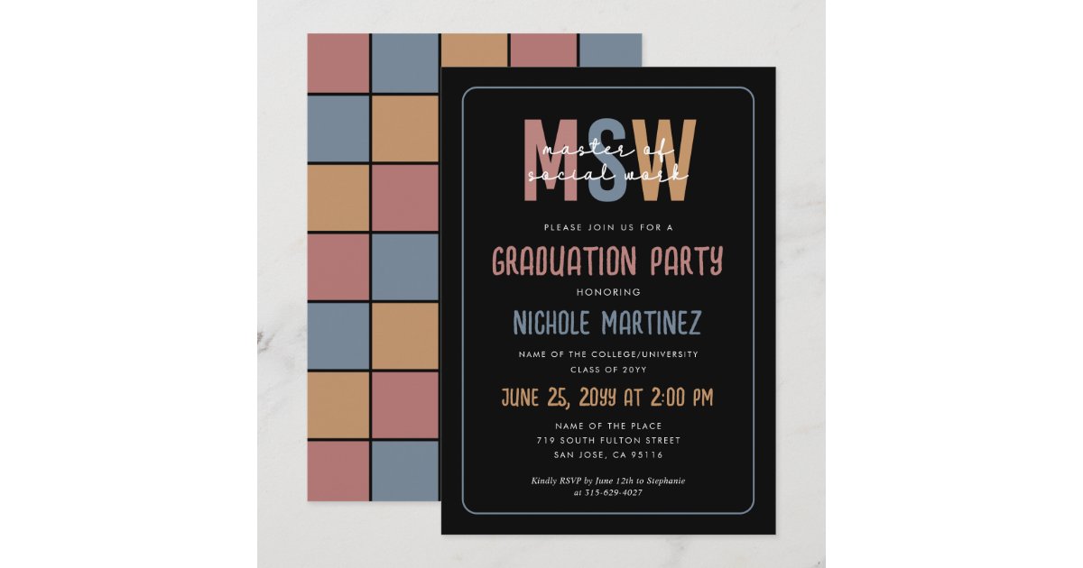 MSW Master of Social Work Graduation Invitation | Zazzle