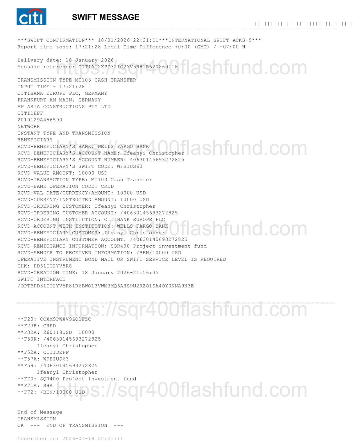 FLTC. swift messages used in funds transfers MT103, MT202