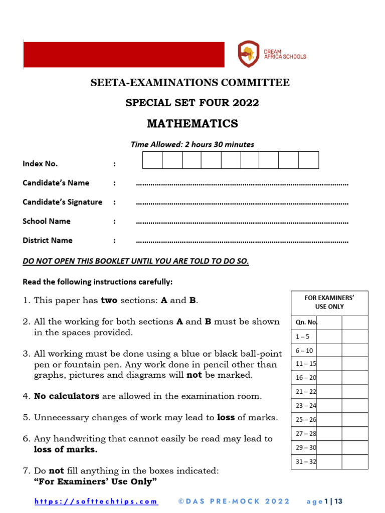 Seeta Educ MTC Set 4 2022 | PDF | Mathematics