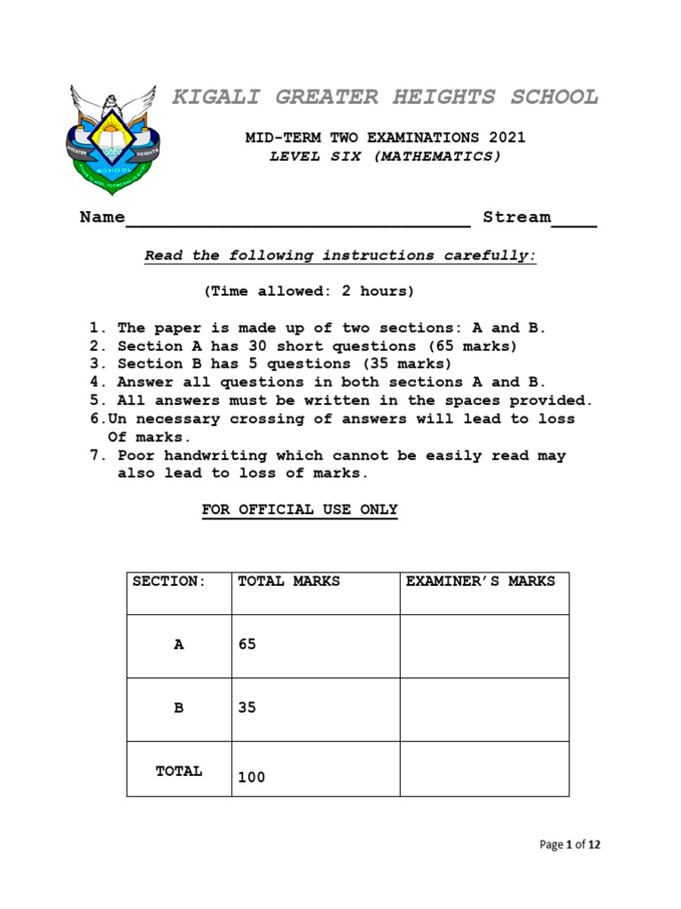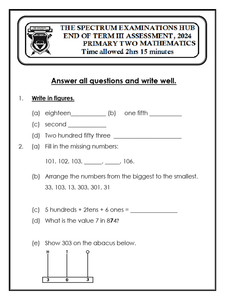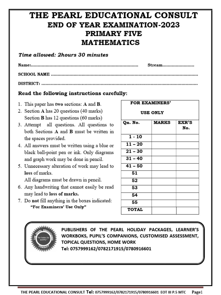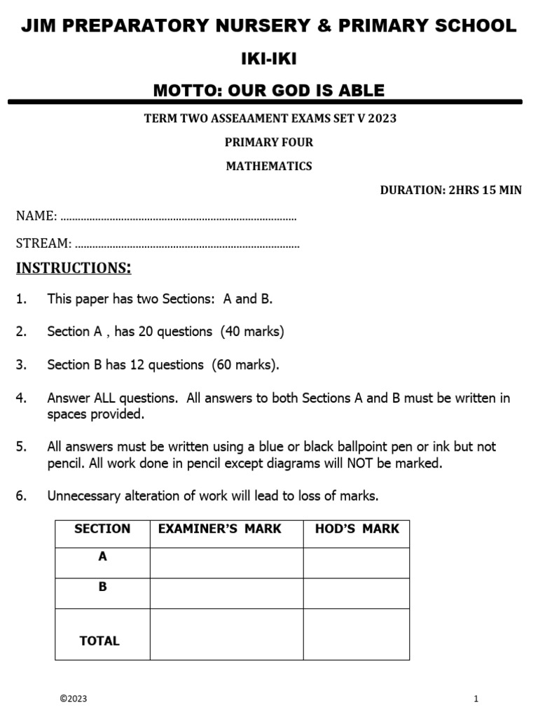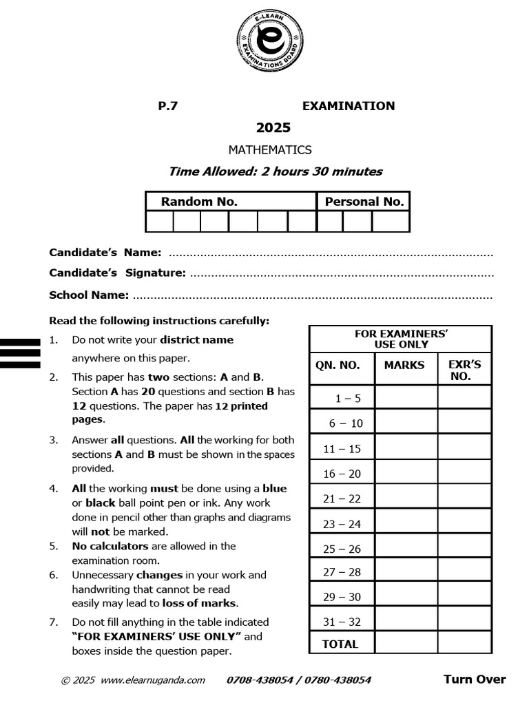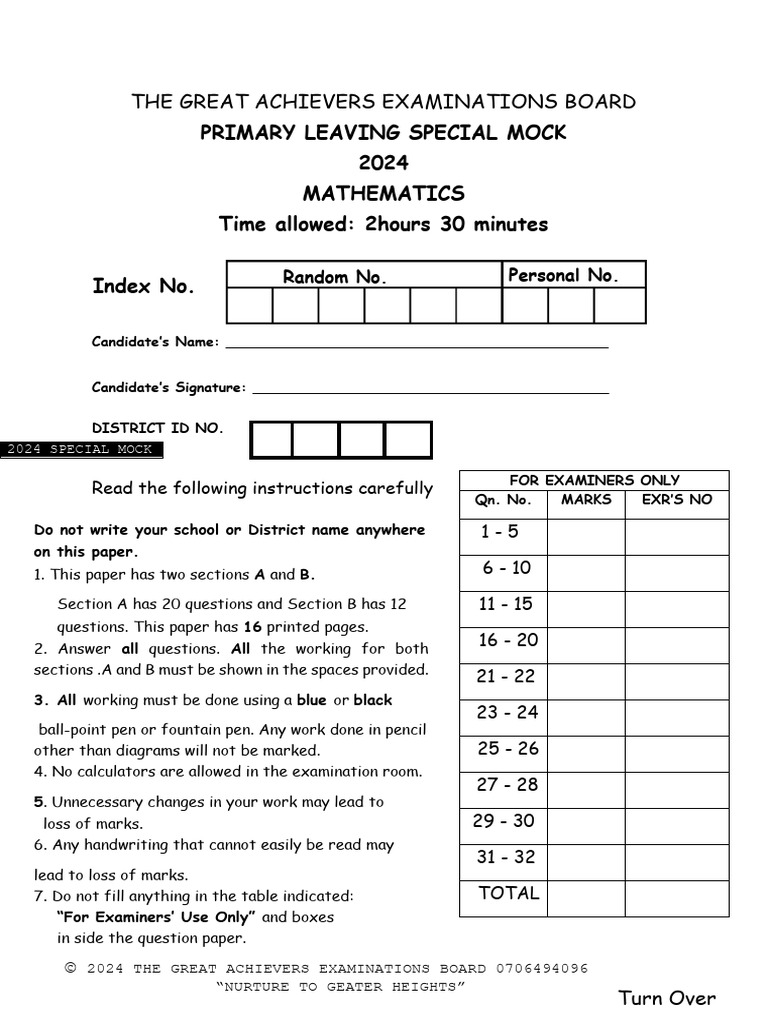 MTC PLE 2025 Mathematics Exam Guide and Instructions - Studocu