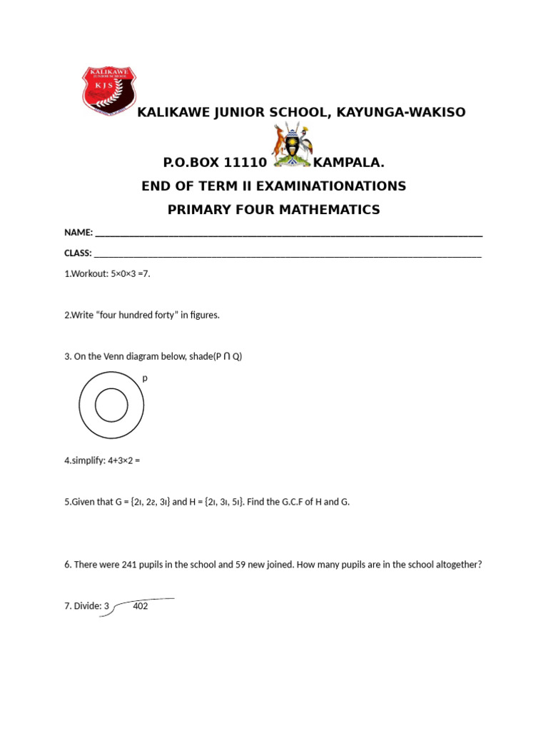 P.7 MTC MT I 2025 | PDF | Mathematics