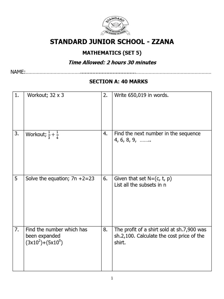 S.1 & S.2 Mathematics – National Curriculum Development Centre (NCDC)