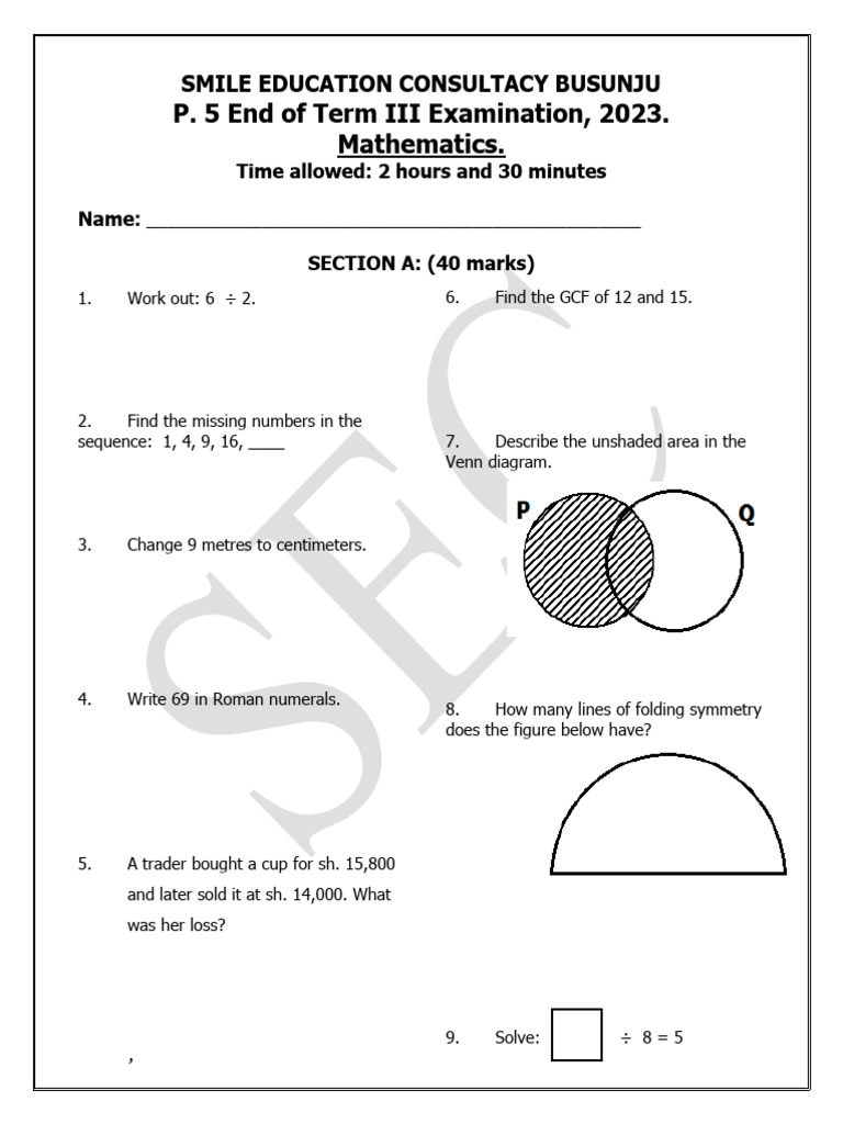 EOT P.5 MTC BY SMILE | PDF | Mathematics