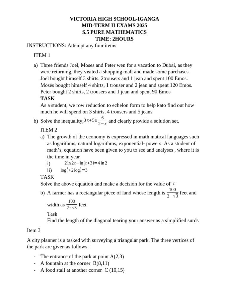 MATHEMATICS WAKISHA MOCK UCE MTC 2024 - MUTO ONLINE