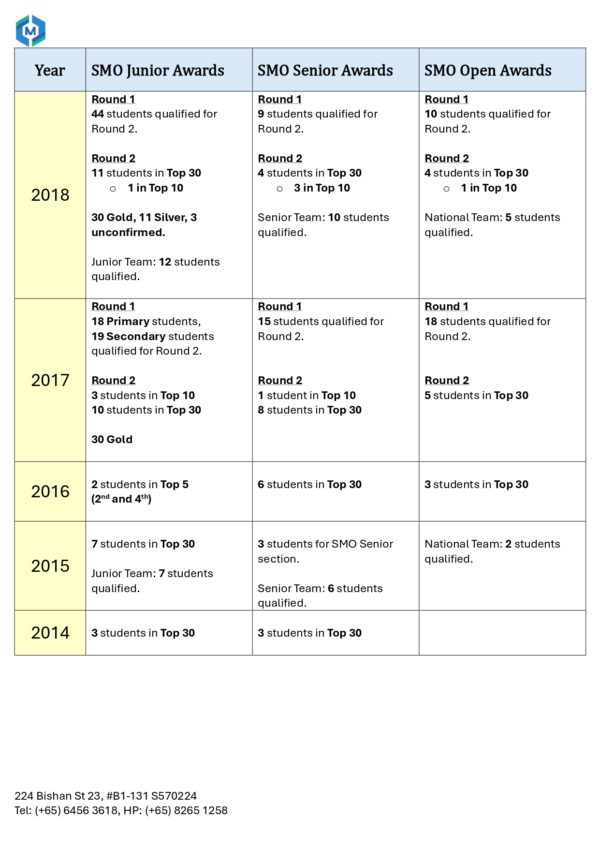 MTC Primary and Secondary Math Olympiad Results (Recent 10 Years ...