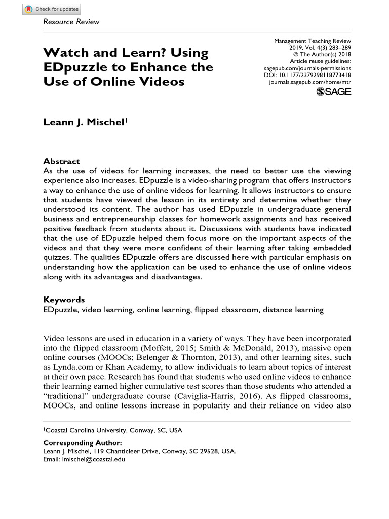 Mischel 2018 MTR Example 2 | PDF | Educational Technology | Learning