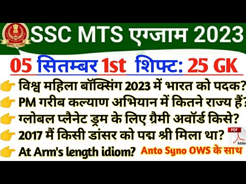 SSC MTS 5 September 1st Shift Question | ssc mts 5 september 1st shift ...