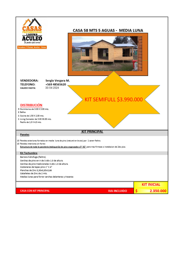 KIT SEMIFULL $3.990.000: Casa 58 Mts 5 Aguas - Media Luna | PDF