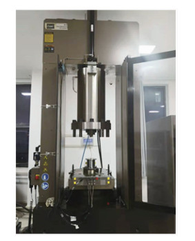 Photograph showing the mounting of Nickel 200 alloy for compression ...