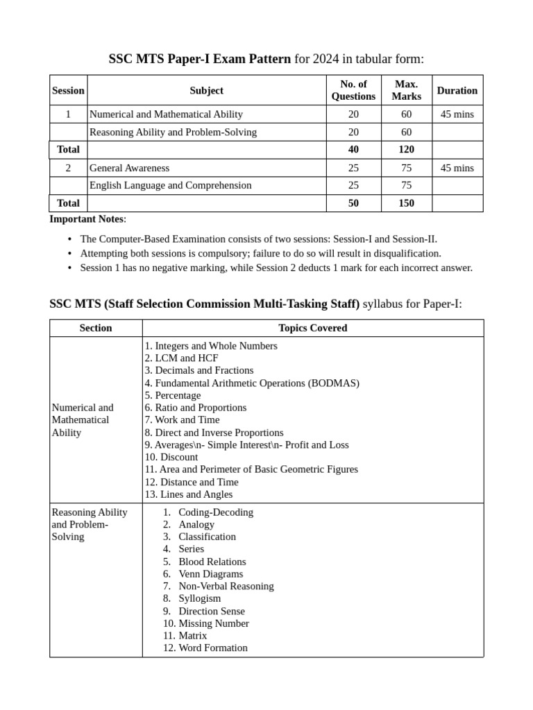 SSC MTS Syllabus 2023 - Latest Syllabus & SSC MTS Exam Pattern ...