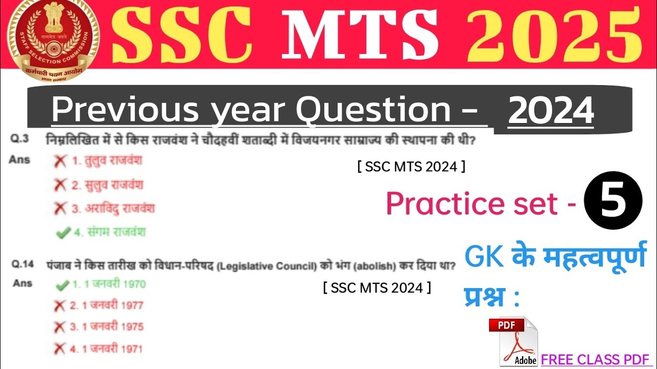 SSC MTS 2025 | SSC MTS Previous year Paper 2024 | Practice set- 05 ...