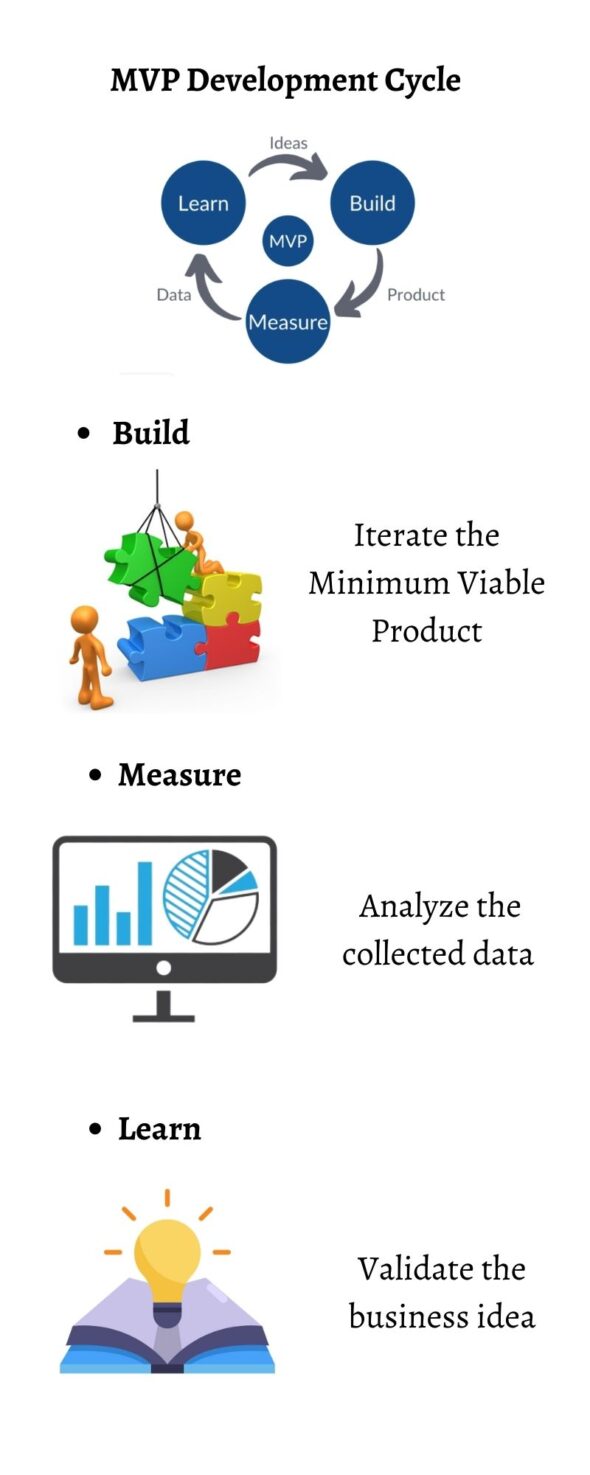 Minimum viable product or MVP development steps explanation outline ...