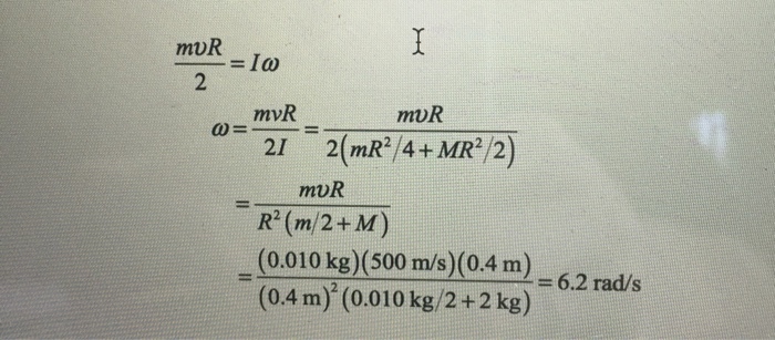 Solved mUR 2 mvR mvR 2 2(mR4+MR/2) mvR R (m/2+M) (0.010 kg) | Chegg.com