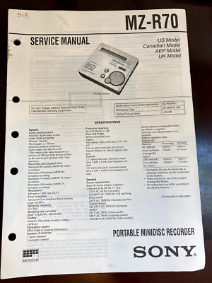 SONY MZ-R70 MZR70 Service Manual FROM THE USA **ORIGINAL** | eBay