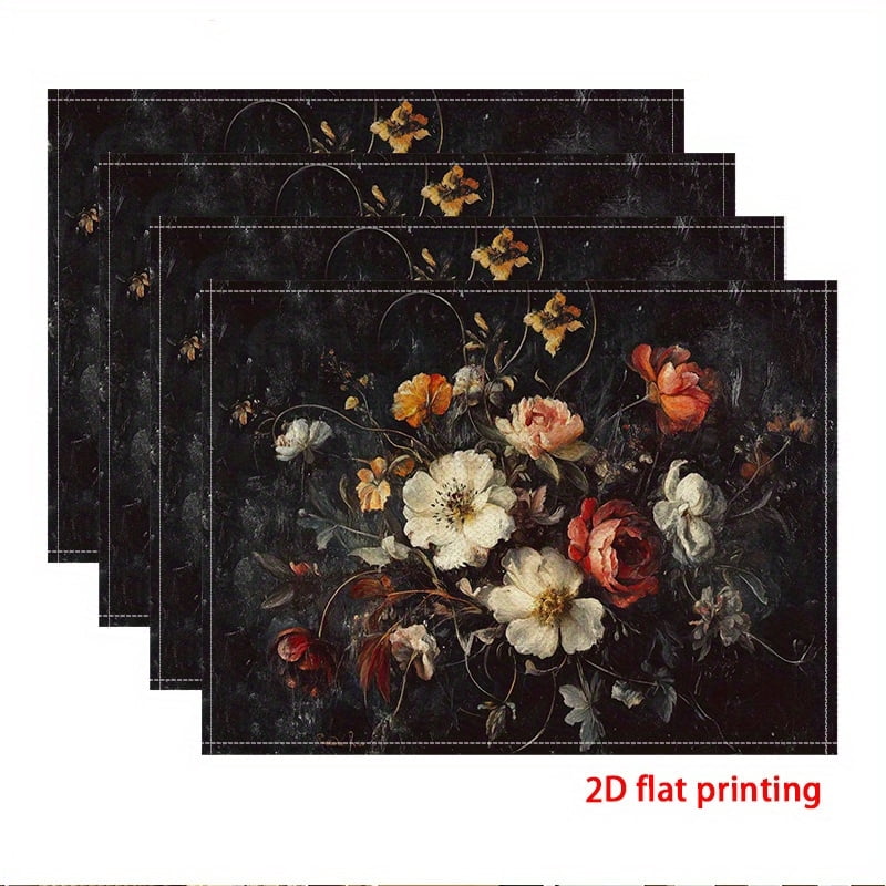 4pcs, Bright and colorful flowers Pattern placemats, fashion print ...