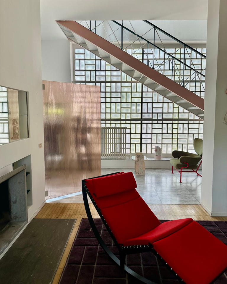 Grand Double-Height Living Room with Luxury Marble Accent Wall Design