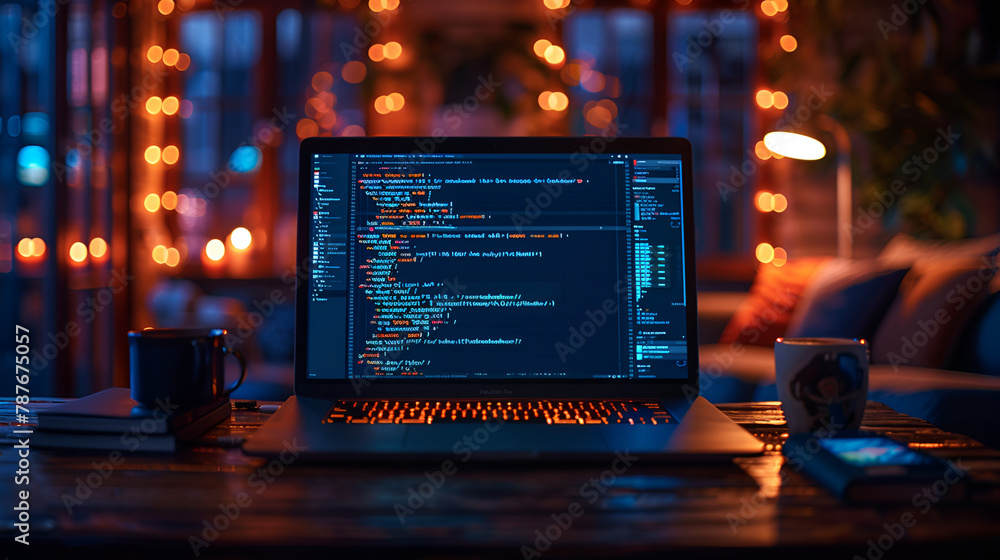 christmas tree in the night city, A MacBook with Lines of Code on Its ...