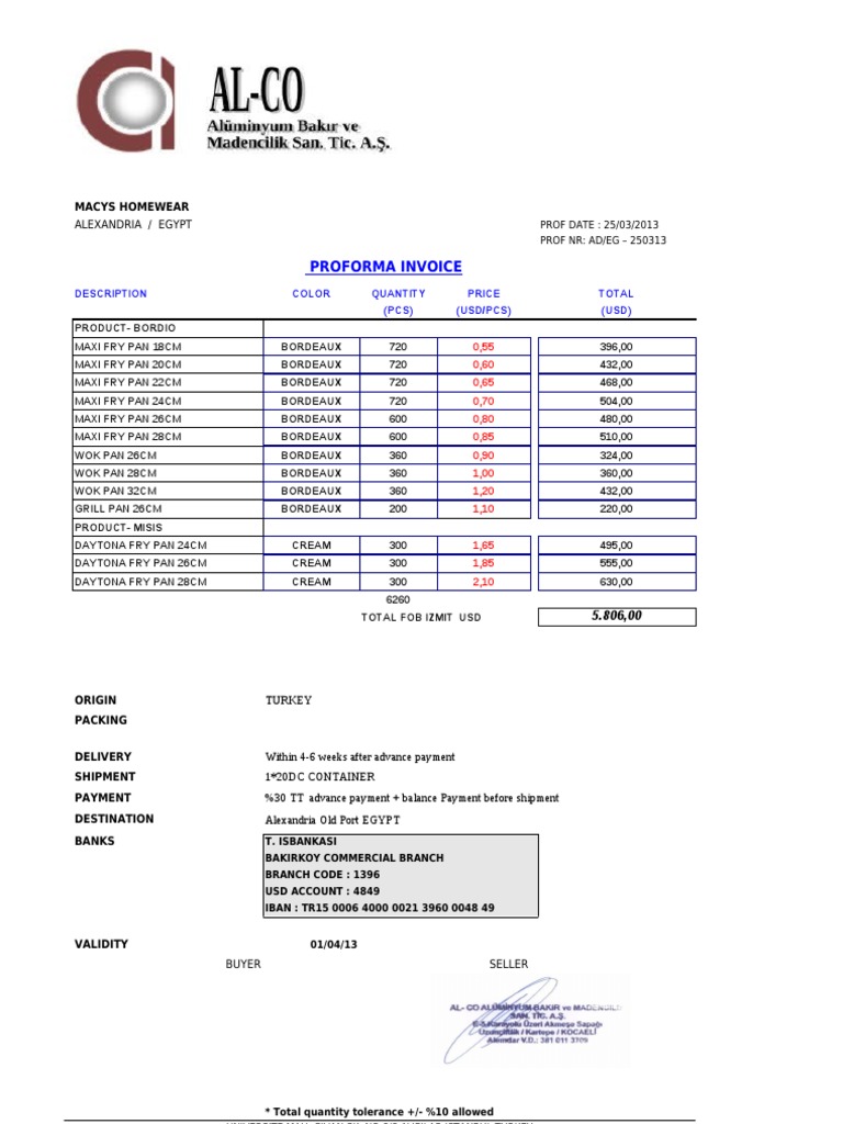 Macy's Homeware Proforma Invoice | PDF