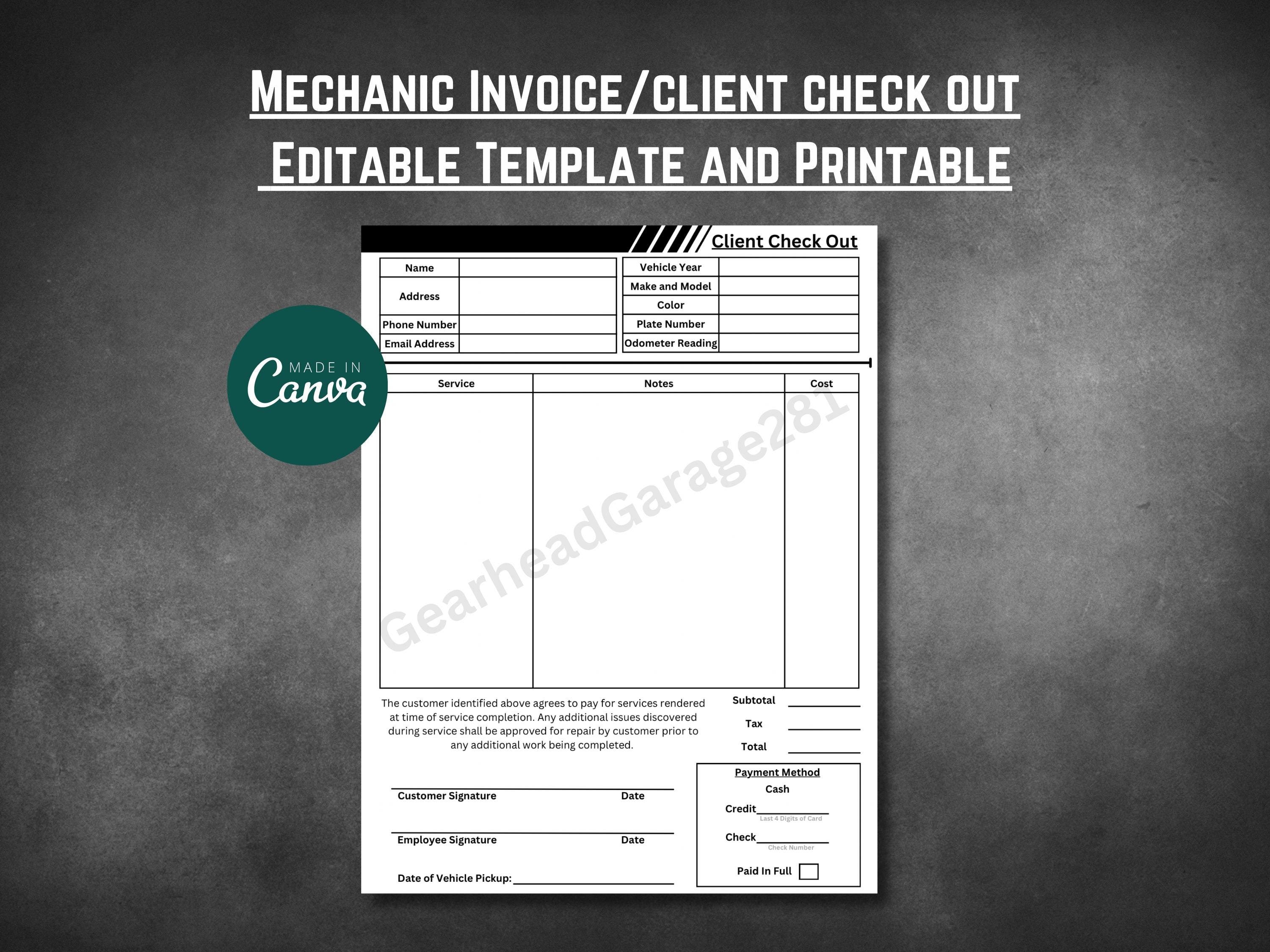 Auto Repair Invoice Template: Customizable Mechanic Form (canva, PDF ...