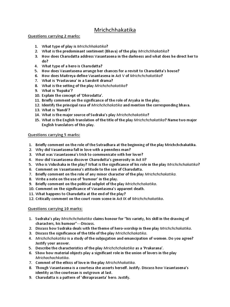 Mrichchhakatika: Key Questions & Insights | PDF | Art | Classics