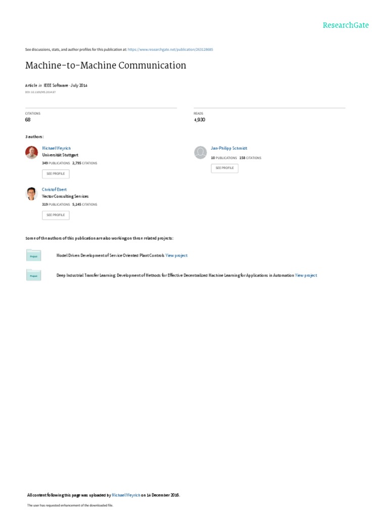 (PDF) Machine-to-Machine Communication