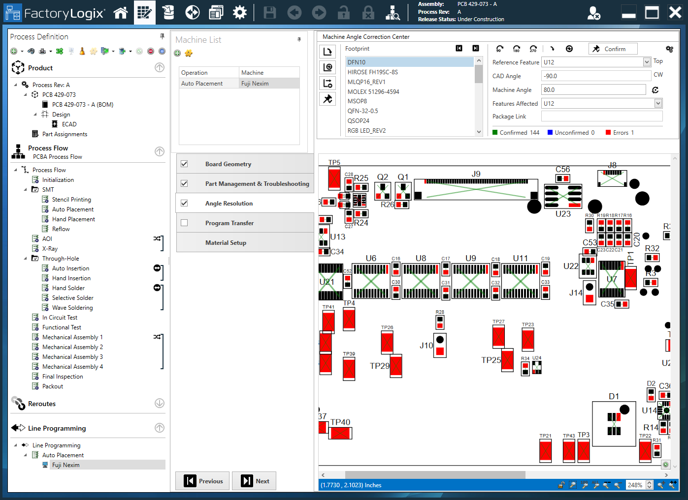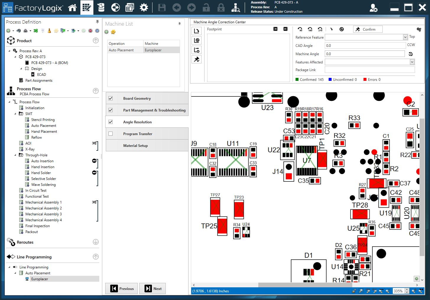Review and correct machine angles