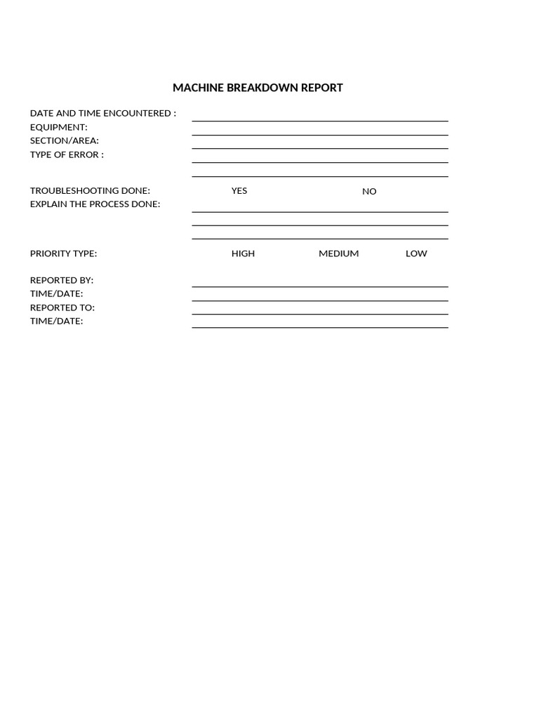 Machine Breakdown Report Template | TEMPLATES EXAMPLE